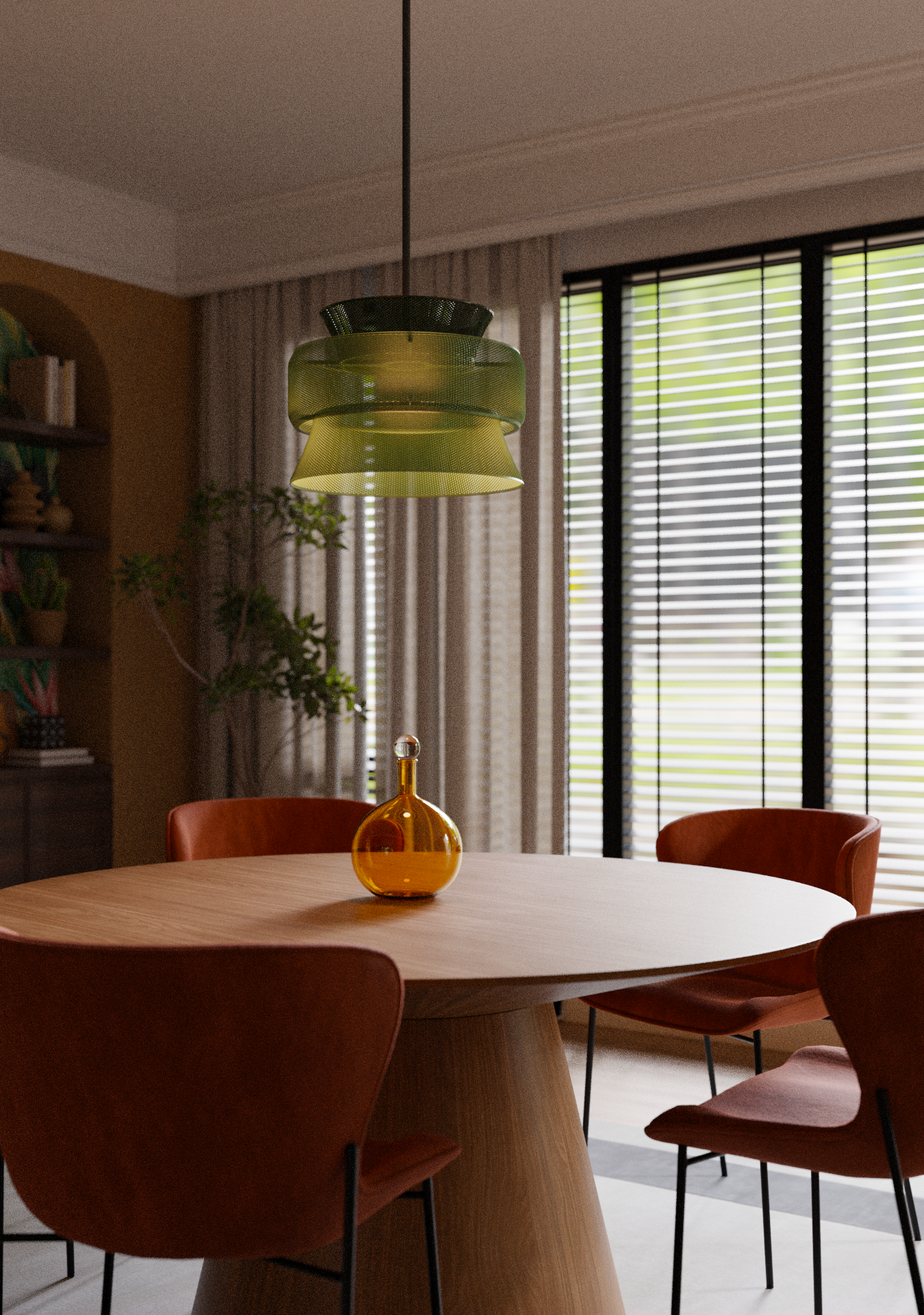 Het opengewerkte 3D-geprinte patroon filtert het licht op een zachte manier, waardoor er een warme gloed ontstaat. Perfect als eyecatcher boven de eettafel, in de woonkamer of als stijlvolle sfeermaker in de hal.