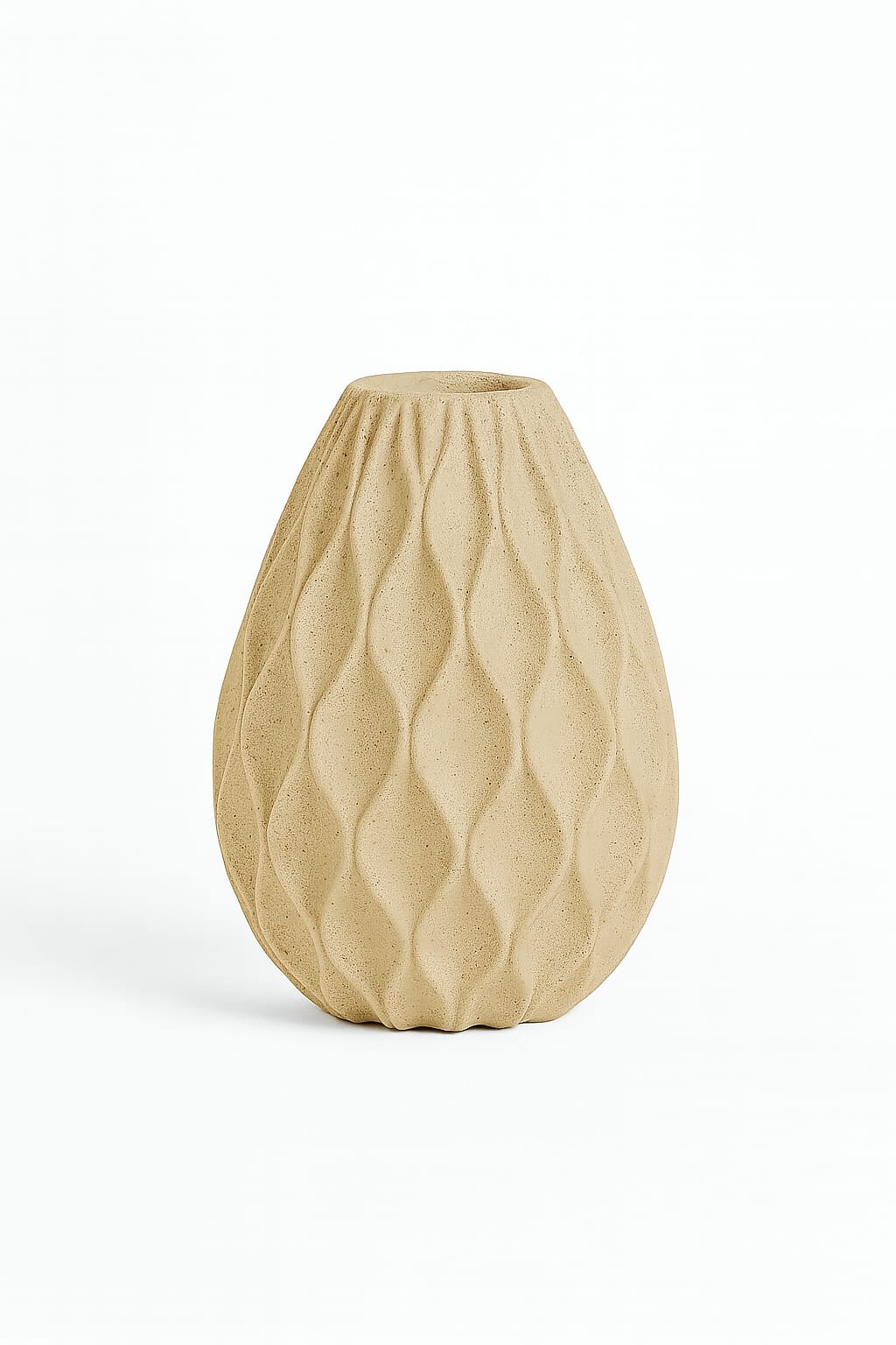 Geïnspireerd door de vormen van wind en zand, brengt vaas “Dune Flow” een rustgevende, aardse sfeer in je interieur. De zachte, golvende textuur en warme zandkleur geeft deze vaas een natuurlijke uitstraling